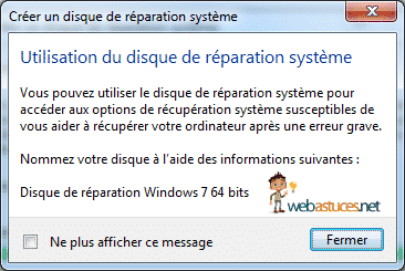 Cliquez ensuite sur »Créer un disque de réparation système »