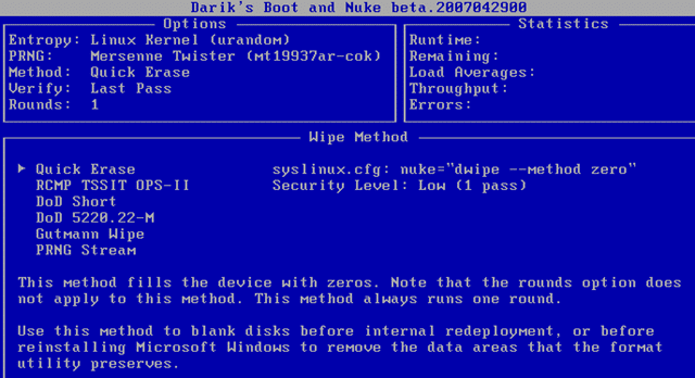 La première chose à faire est de télécharger Darik’s Boot And Nuke. Vous pouvez ensuite graver l’ISO pour en faire un CD de Boot.