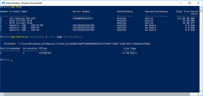 # Créer une partition avec une taille et une lettre spécifique New-Partition –DiskNumber 5 -Size 15gb -DriveLetter J