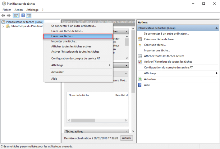 Lancer le planificateur de tâche avec la commande « taskschd.msc ».