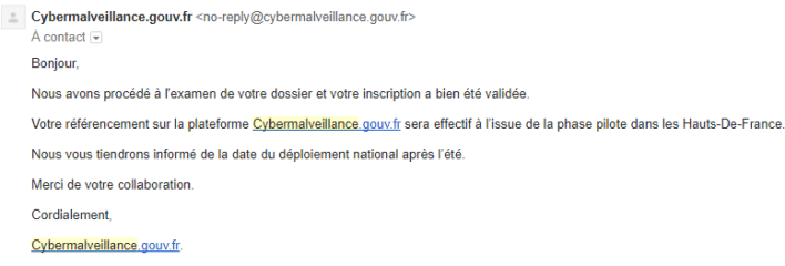 Dans mon cas, c’est tout bon ! Mon inscription a été validée il y a déjà un moment, et je suis donc susceptible de recevoir des coups de fil sur mon autoentreprise dès demain, lors de l’ouverture de Cybermalveillance au niveau national.
