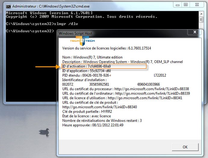 Si vous êtes un peu plus à l’aise avec l’interface graphique, vous pouvez alors le faire en lançant le module d’activation de Windows avec la commande suivante dans une invite de commandes lancée en Administrateur :