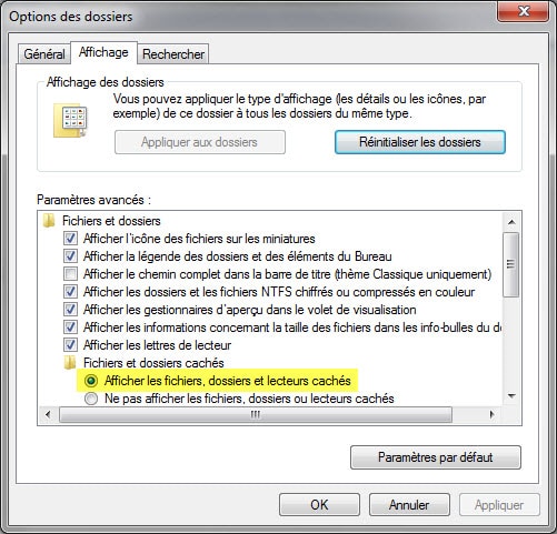 Pour cela en tout premier lieu, il vous faut afficher les fichiers cachés.