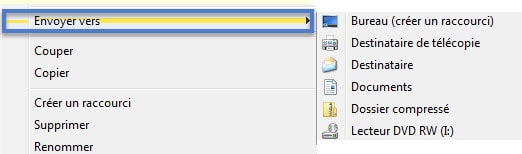 Lorsque vous cliquez avec le bouton droit sur un fichier ou un dossier dans le menu contextuel apparaît « envoyer vers ».