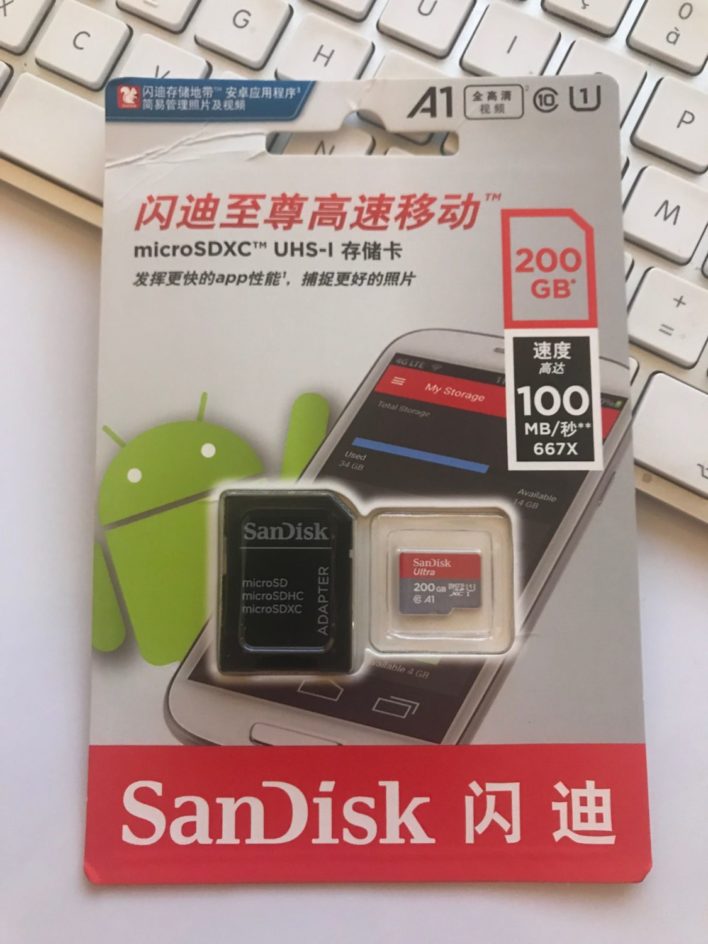 Vu que la carte bancaire à chauffer pour ces derniers achats, j’ai voulu faire quelques économies sur l’achat d’une carte micro SD. J’ai donc choisi un site chinois que je ne connaissais pas, mais qui m’a été conseillé par certains d’entre vous. J’ai reçu ma carte après trois semaines (normal sur ce type de site), mais à la réception j’ai eu quelques doutes en voyant ça :