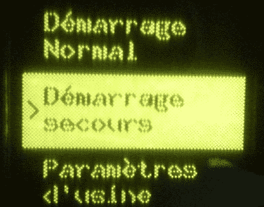 Il vous sera alors demandé de choisir le redémarrage normal, d’usine ou de secours.