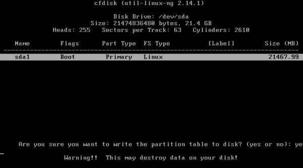 Enfin, confirmez les changements en tapant « yes » et appuyez sur Entrée.