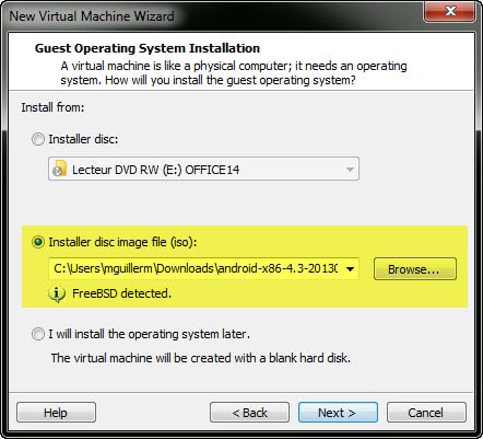 Dans ce guide j’ai utilisé android-x86-4.3-20130725.iso, mais cela devrait fonctionner de la même façon avec les autres iso.