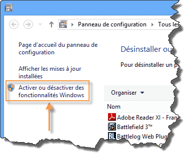Ensuite, sélectionner « Activer ou désactiver des fonctionnalités Windows »