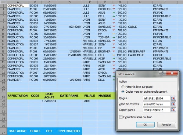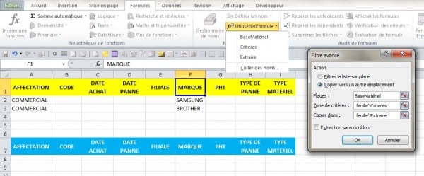 Faites de même pour la zone de critères et d’extraction. Attention toutefois les zones de critères peuvent changer donc vérifiez tout de même.