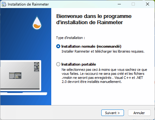Télécharger RainmeterLors de l’installation, vous pouvez sélectionner la langue que vous souhaitez.