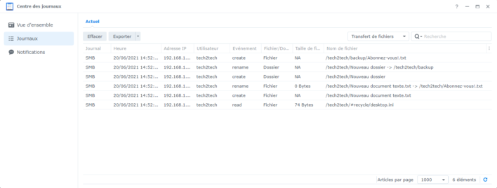 Vous pouvez activer l’option depuis les paramètres de logs SMB.