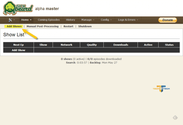 On regarde sur l’interface principale de SickBeard. Ici on clique sur « Add Shows »