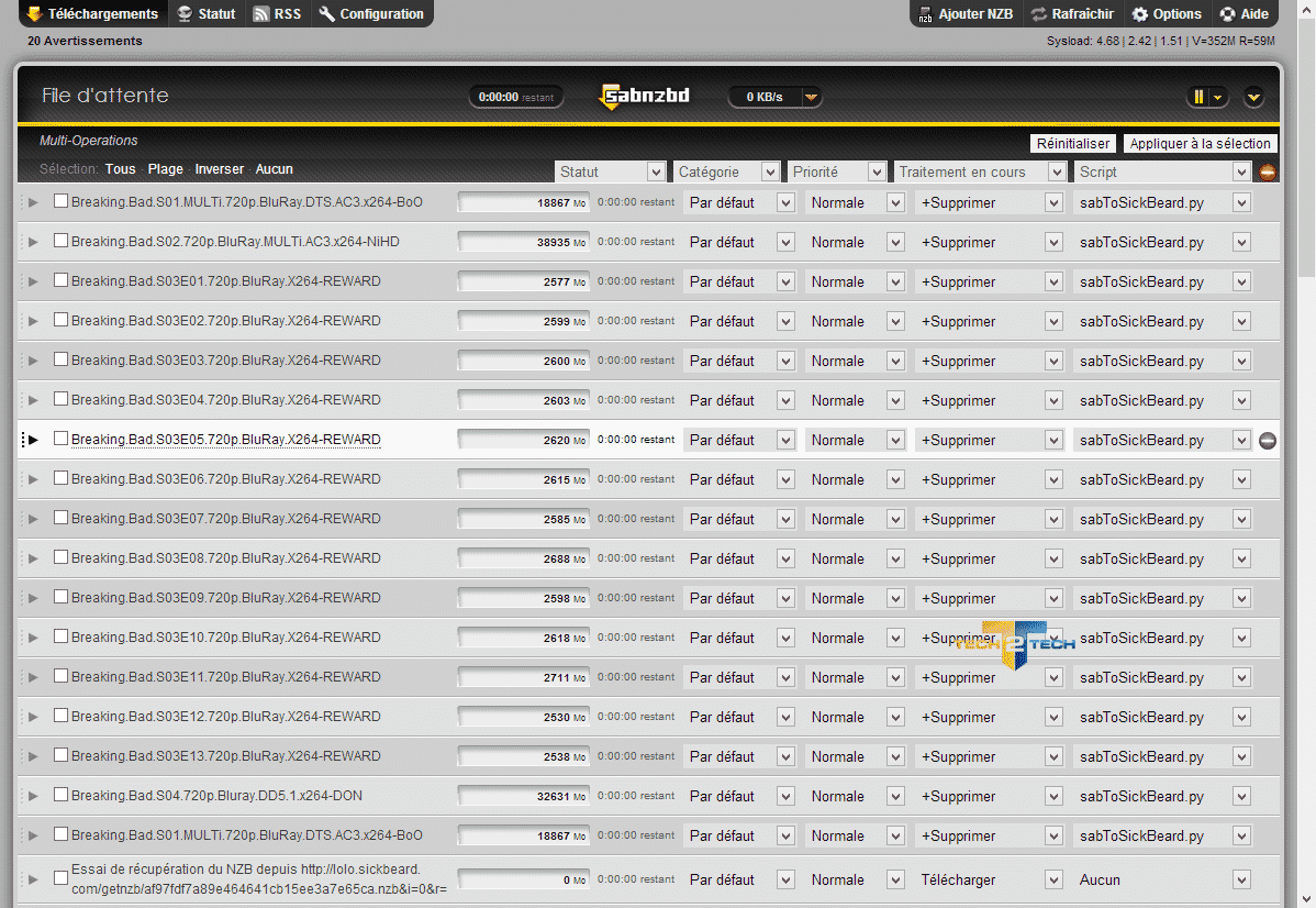 Le téléchargement se lance alors dans le client de téléchargement que vous avez configuré dans SickBeard.