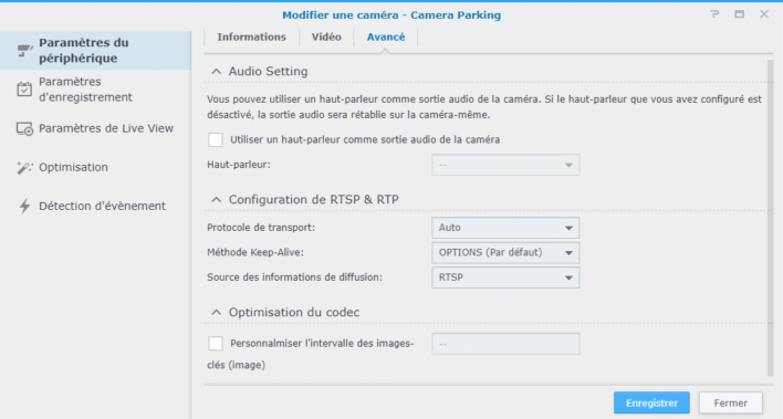 Ce n’est pas encore fini, il est maintenant nécessaire de configurer votre caméra. Zone de détection, heures d’enregistrement et j’en passe. Nous verrons dans cette partie, comment configurer une caméra sur Surveillance Station de Synology.