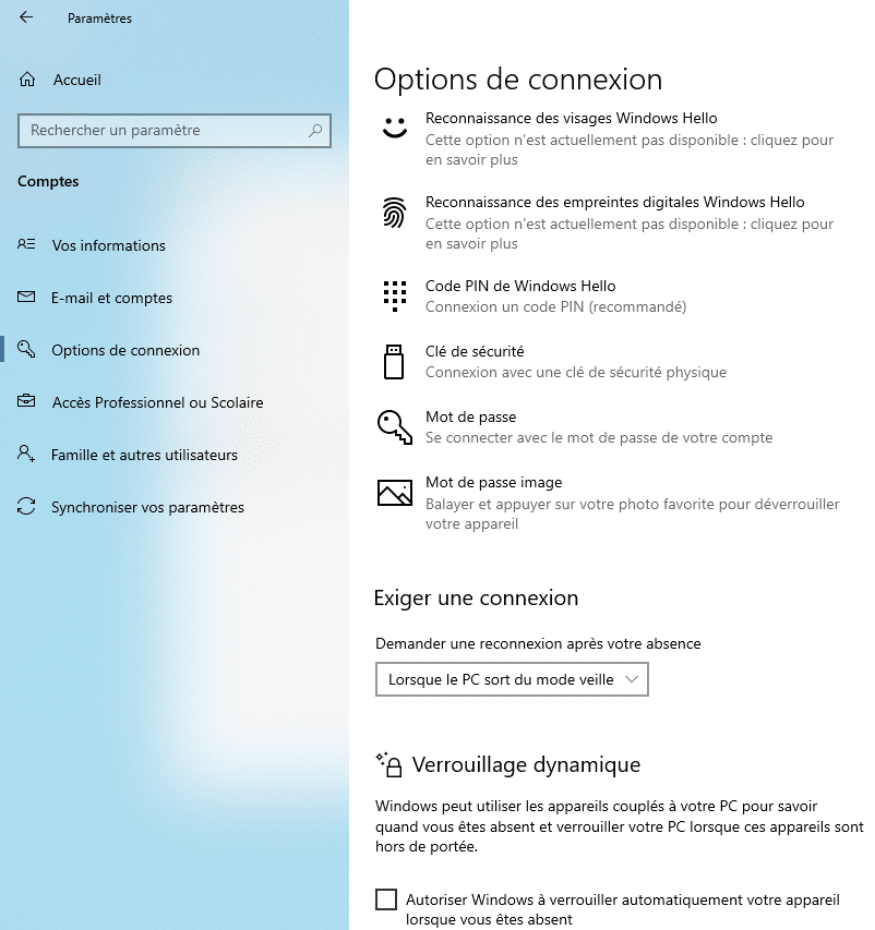 Vous pouvez ensuite facilement ajouter d’autre méthode d’authentification tel que Windows Hello, l’empreinte digitale ou bien d’autres…