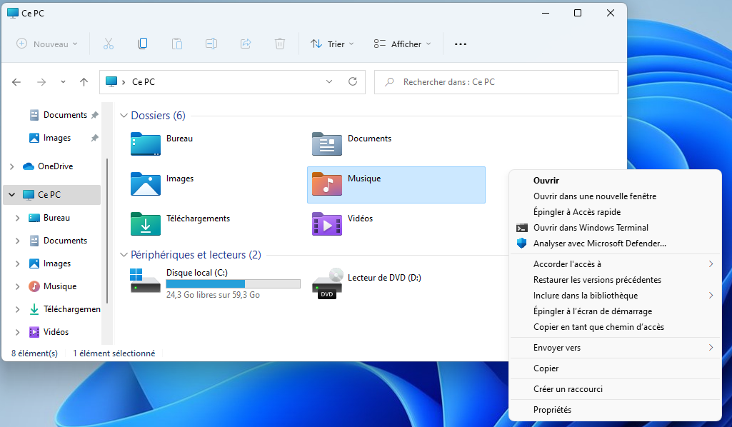 Le ruban que vous pouviez trouver en haut des fenêtres de l’explorateur à disparu pour faire place à une nouvelle interface plus minimaliste. Les menus contextuels (clic droit) on également changé, mais encore une fois cela ne fait pas ou peu fini. Il manque des fonctions et pour cela, il faudra cliquer sur « Afficher plus d’options« . Vraiment dommage.